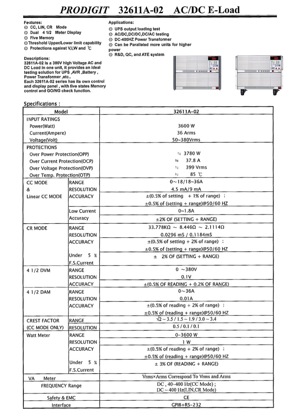 PRODIGIT 32611A-02 AC & DC Electronic Load (380V, 36A, 3600W) | EMIN.ASIA