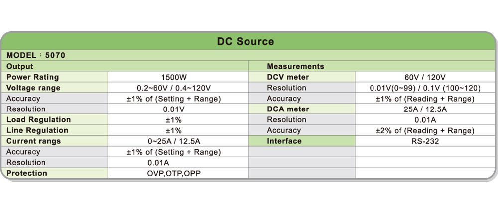 PRODIGIT 5070 DC Source (1500W; 120V; 12.5A) | EMIN.ASIA