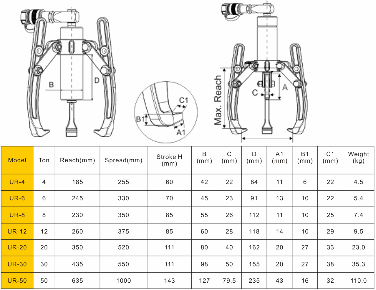 Protorque UR-6 Separating Hydraulic Puller (wooden case,6 ton) | EMIN.ASIA