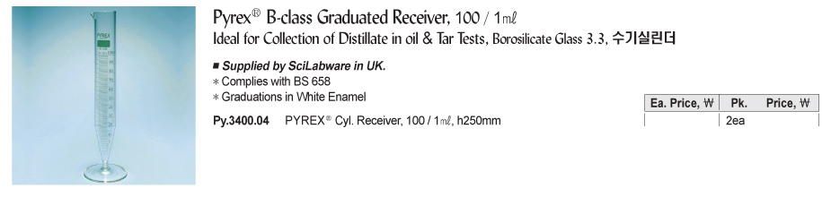 Pyrex Py.3400.04 B-class Graduated Receiver (100ml, 1ml, h250mm) | EMIN.ASIA