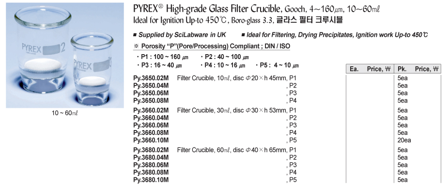 Pyrex Py.3660.04M High-grade Glass Filter Crucible (P2: 40 - 100 ㎛) | EMIN.ASIA