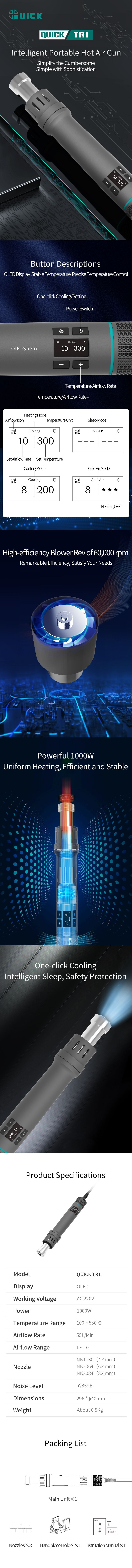 QUICK TR1 Intelligent Portable Hot Air Gun (AC 220V, 1000W) | EMIN.ASIA