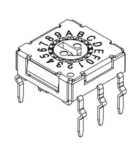 Same Sky (formerly CUI Devices) RDS-16S-7229-R-CR DIP Switches Rotary DIP Switch, 7.2 x 7.2 x 2.9 mm, rotor actuator, 16 pos, crimped, TH