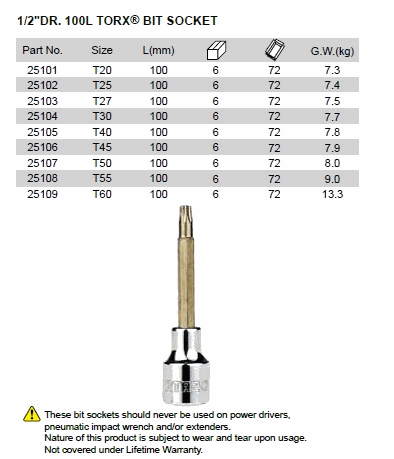 SATA 25101 TORX BIT SOCKET (T-20 1/2inch) | EMIN.ASIA