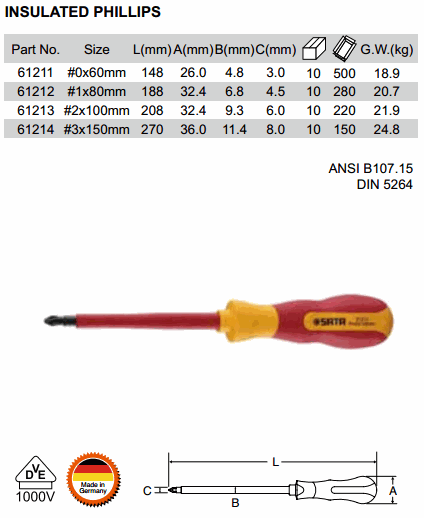SATA 61211 INSULATED PHILLIPS (148mm, #0x60mm) | EMIN.ASIA