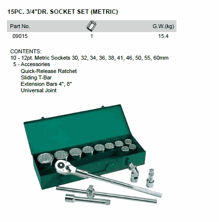 SATA 09015 15PC. 3/4inch DR. SOCKET SET (METRIC) | EMIN.ASIA
