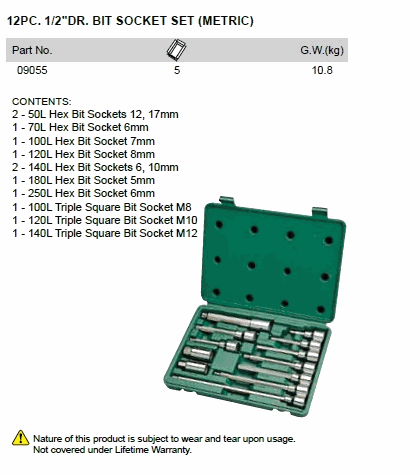 SATA 09055 12PC. 1/2inch DR. BIT SOCKET SET (METRIC) | EMIN.ASIA