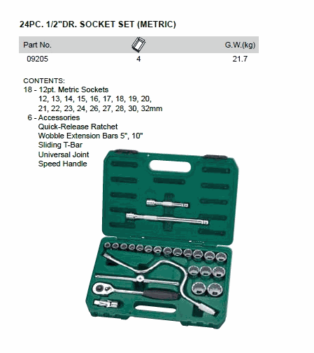SATA 09205 24PC 1/2"DR SOCKET SET (METRIC) | EMIN.ASIA