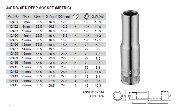 SATA 12401 DR. 6PT. DEEP SOCKET (S.A.E.) (3/8inch,8mm) | EMIN.ASIA