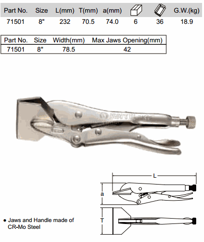 SATA 71501 METAL SHEET CLAMP LOCKING PLIERS (8 Inch, ø42 mm) | EMIN.ASIA