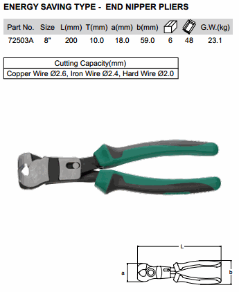 SATA 72503A ENERGY SAVING TYPE - END NIPPER PLIERS 8 inch (200 mm, ø2.6mm) | EMIN.ASIA