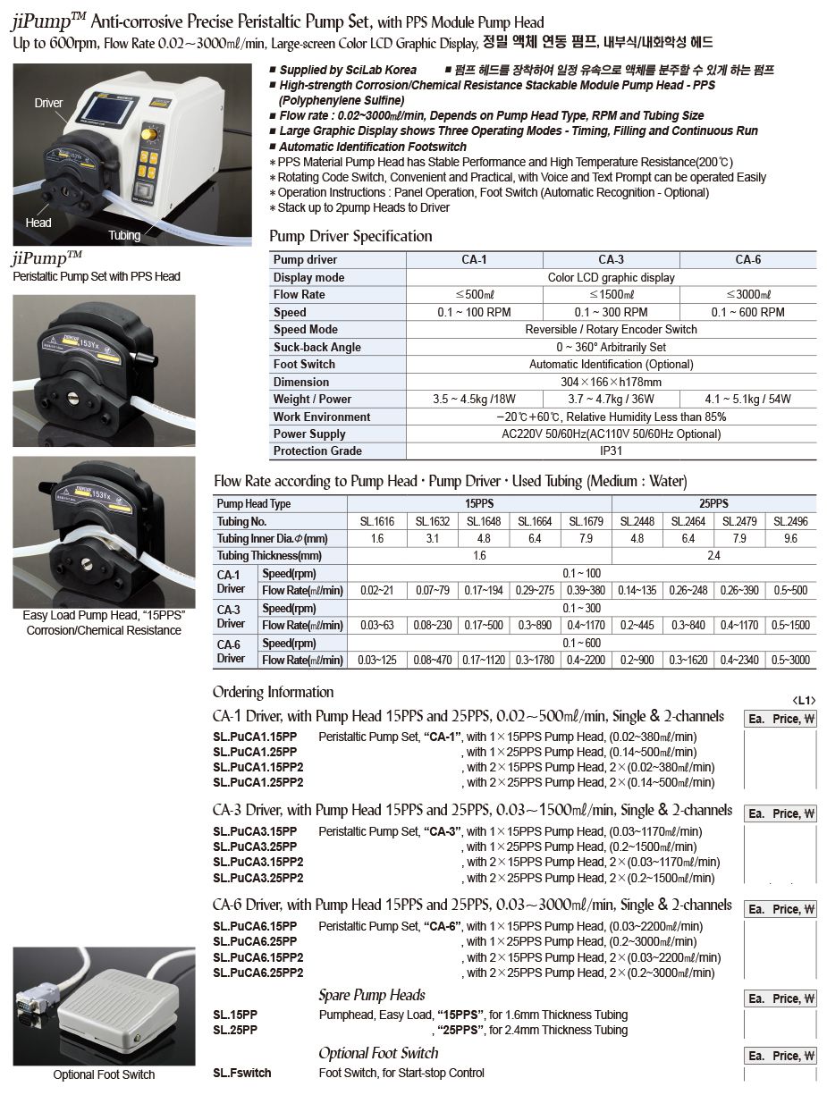 SciLab CA-1 Peristaltic Pump (0.1~100 RPM, ≤500ml) | EMIN.ASIA