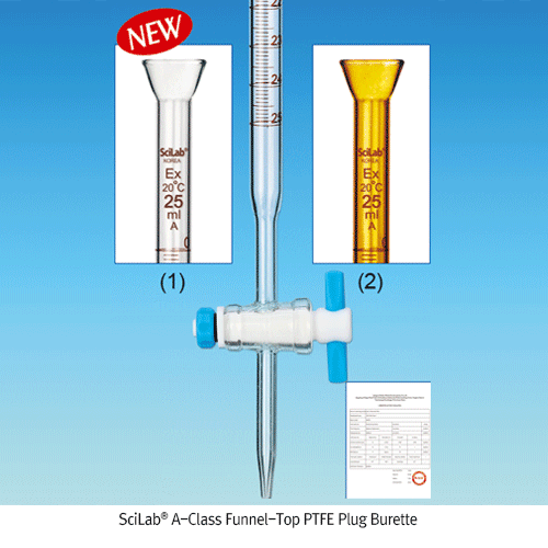 SciLab SL.Bur1002 Burette, A-Class, Funnel-Top, PTFE-Plug, Clear, 25 / 0.05㎖, accu.±0.03㎖ | EMIN.ASIA