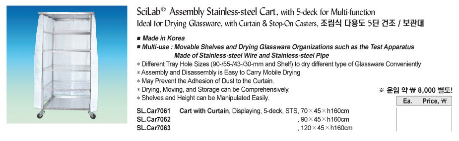 SciLab SL.Car7063 Assembly Stainless-steel Cart (Curtain, 5-deck, 120 x 45 x h160 cm) | EMIN.ASIA