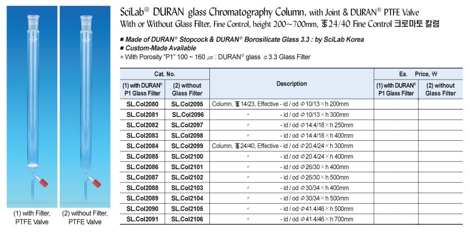 SciLab SL.Col2105 DURAN glass Chromatography Column (PTFE Valve, 24/40, Φ46xh500mm) | EMIN.ASIA