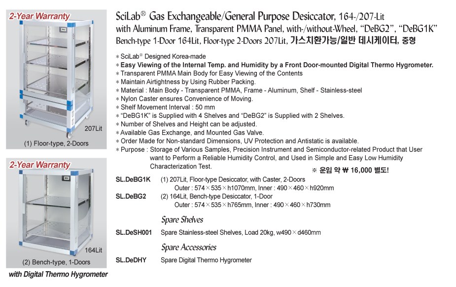 * Purpose: Storage of Various Samples, Precision Instrument and Semiconductor-related Product that User want to Perform a Reliable Humidity Control, and Used in Simple and Easy Low Humidity Characterization Test.