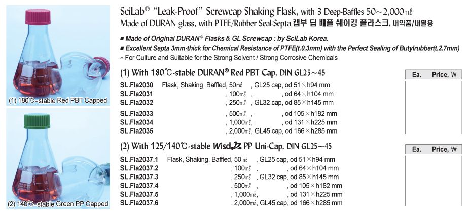 SciLab SL.Fla2032 Leak-Proof Screwcap Shaking Flask (250ml, GL32; 3 Deep-Baffles) | EMIN.ASIA