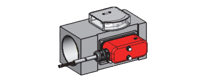 Standard: horizontal inwards flow from the left; other installation positions are possible; the installation position affects the switching point and range.