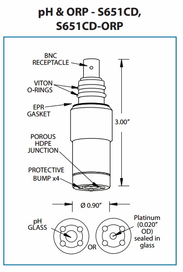SENSOREX S651CD-ORP ORP Electrode (+/- 2000mV, flat, protective pins) | EMIN.ASIA
