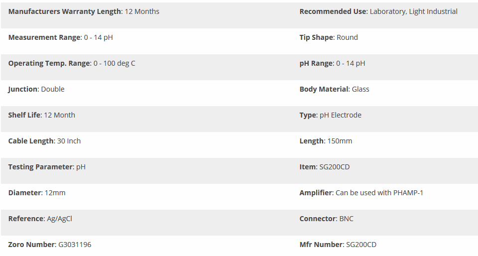 SENSOREX SG200CD pH Electrode (0 ~ 14 pH, double junction, BNC) | EMIN.ASIA