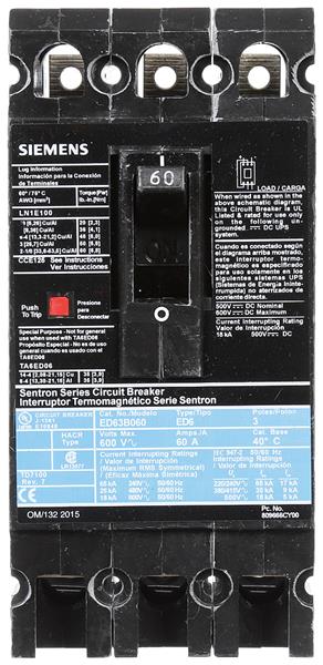 SIEMENS ED63B060 Low Voltage BRKR ED6 3P 600V 60A | EMIN.ASIA