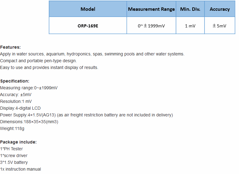 Sinotester ORP-169E ORP Meter (0~±1999mV) | EMIN.ASIA