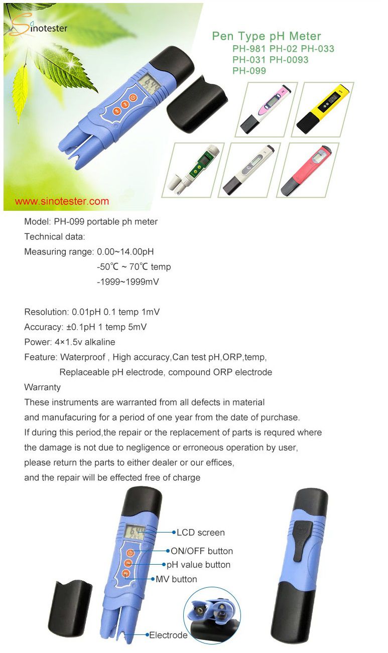 Sinotester PH-099 Pen Type pH Meter (0.0~14.0 pH) | EMIN.ASIA