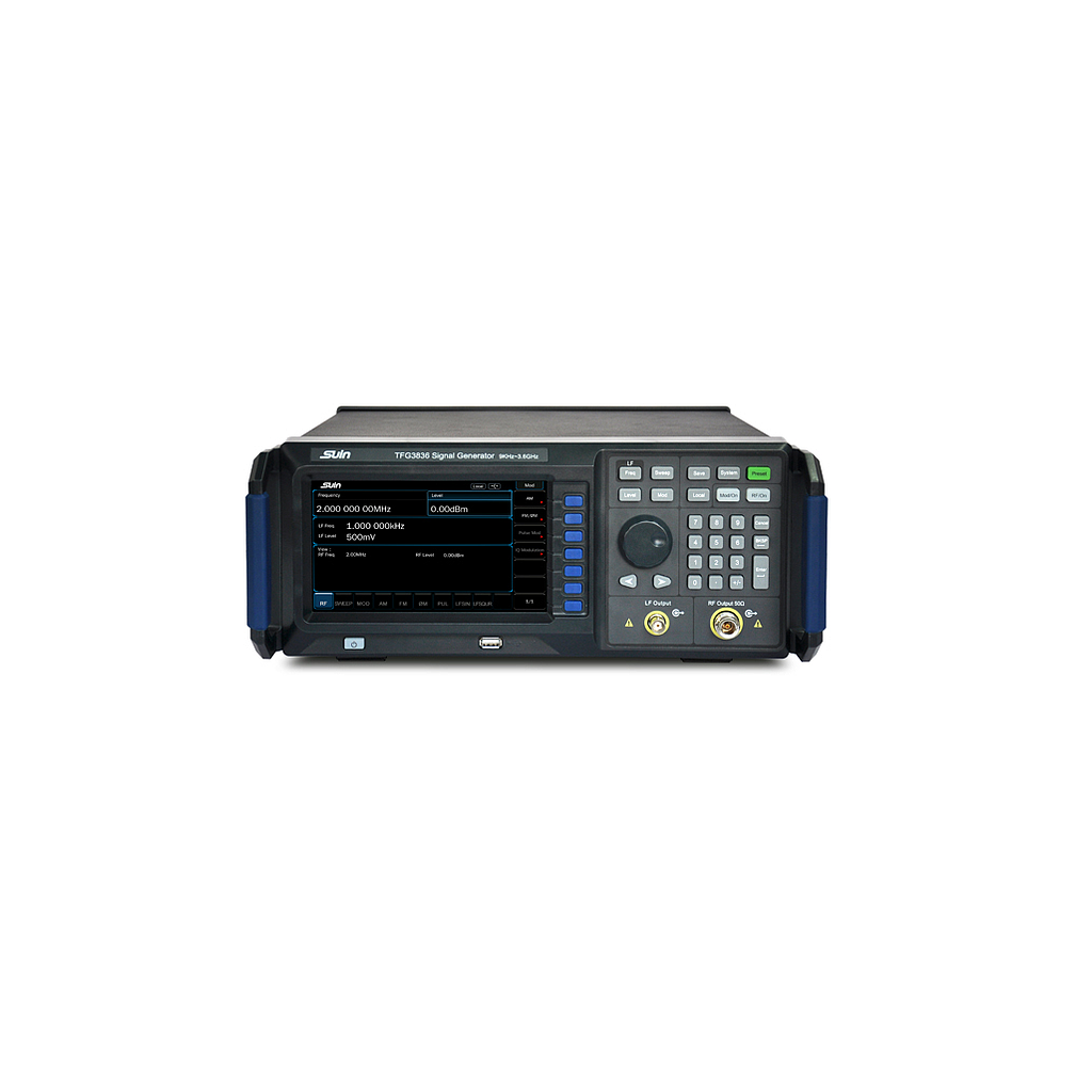 Suin’s TFG3836 RF signal generators have a frequency range from 9KHz to 3.6GHz. Except of normal analog modulation such as AM, FM and φM, it can also provide pulse modulation. In addition, sweep capability for frequency and power could also be supported.