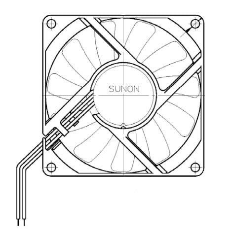 Sunon PSD1208PHB1-A.(2).Z.GN Axial Axial Fan, 80x80x15mm, 12VDC, 39.9CFM, 0.18"H2O, Ball, Wire, Auto Restart | EMIN.ASIA