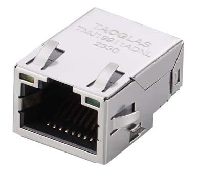 Taoglas TMJ19911ADNL Magnetic Jack RJ45 ICM, 10/100 Base-T, 1x1, Low Profile, Tab Up, 8 pin SMT, T+CMC, Mid-mount, Shielded EMI Finger, LED, Industrial grade