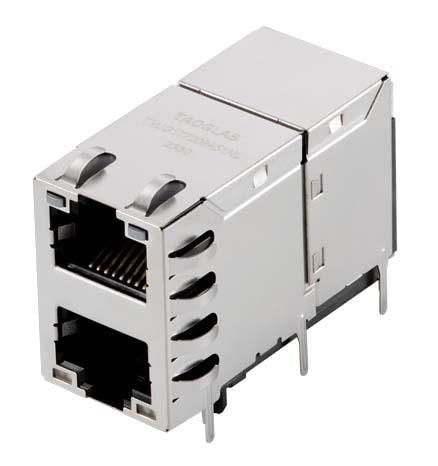 Taoglas TMJG177209A51NL Magnetic Jack RJ45 ICM, 1G Base-T, 10x2 pins THT, 2x1, Long body, Shielded EMI Finger, 3Wire+T, Current drive, LED, Industrial grade