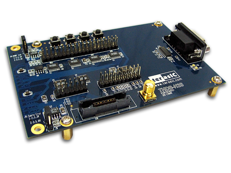 H2S (HSMC to Santa Cruz Card) is an adapter board for converting High Speed Mezzanine Card (HSMC) connector to Santa Cruz (SC) interface which allows users to use the SC interface boards on a board with a HSMC connector. Also, the source signals form the HSMC connector to the SC header on the H2S board pass through level shifters to adjust the logic level difference between the HSMC and SC interface board.