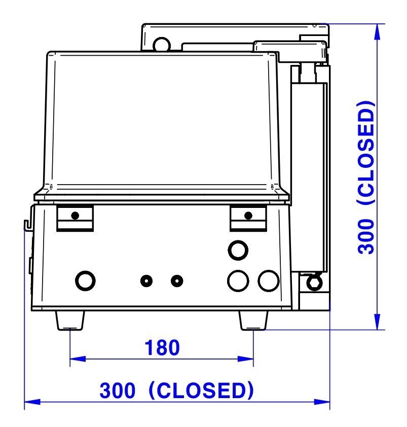 - Outside: 459(W) x 300(D) x 300(H) mm, lid closed. 449(H) mm, lid open.