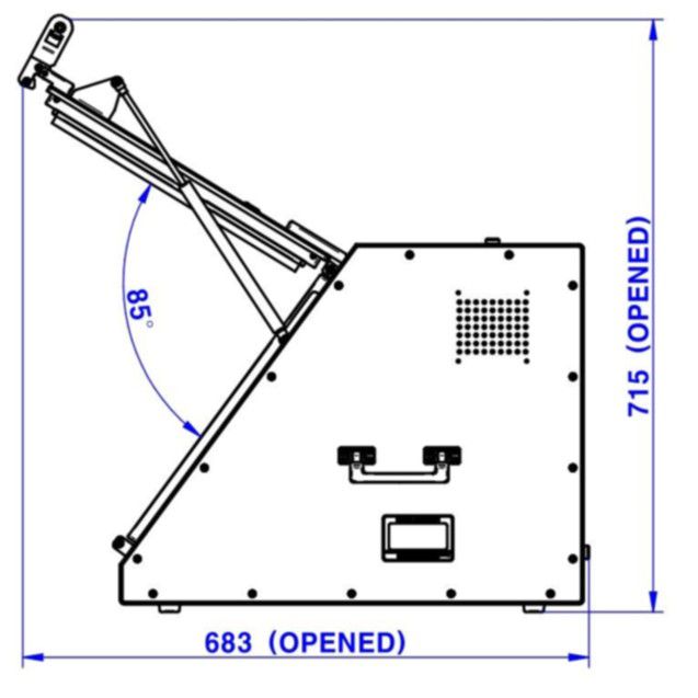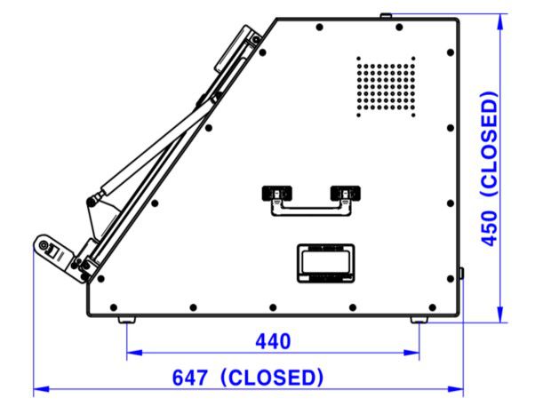 - Outside : 562(W) x 647(D) x 450(H) mm, lid closed. 715(H) mm, lid open.