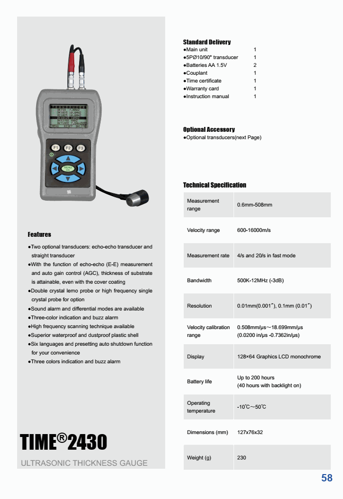 TIME 2430 Ultrasonic Thickness Gauge (0.6mm-508mm) | EMIN.ASIA