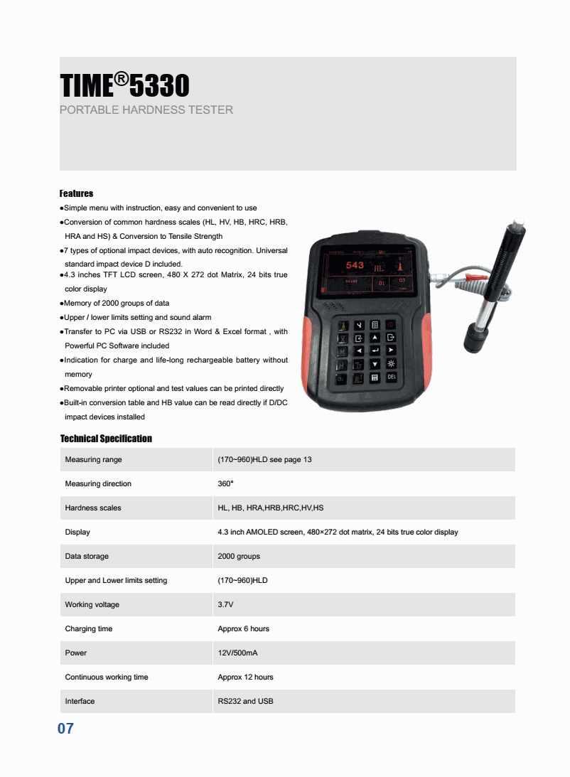 TIME 5330 Portable Hardness Tester (Leeb; 170 ~ 960 HLD) | EMIN.ASIA