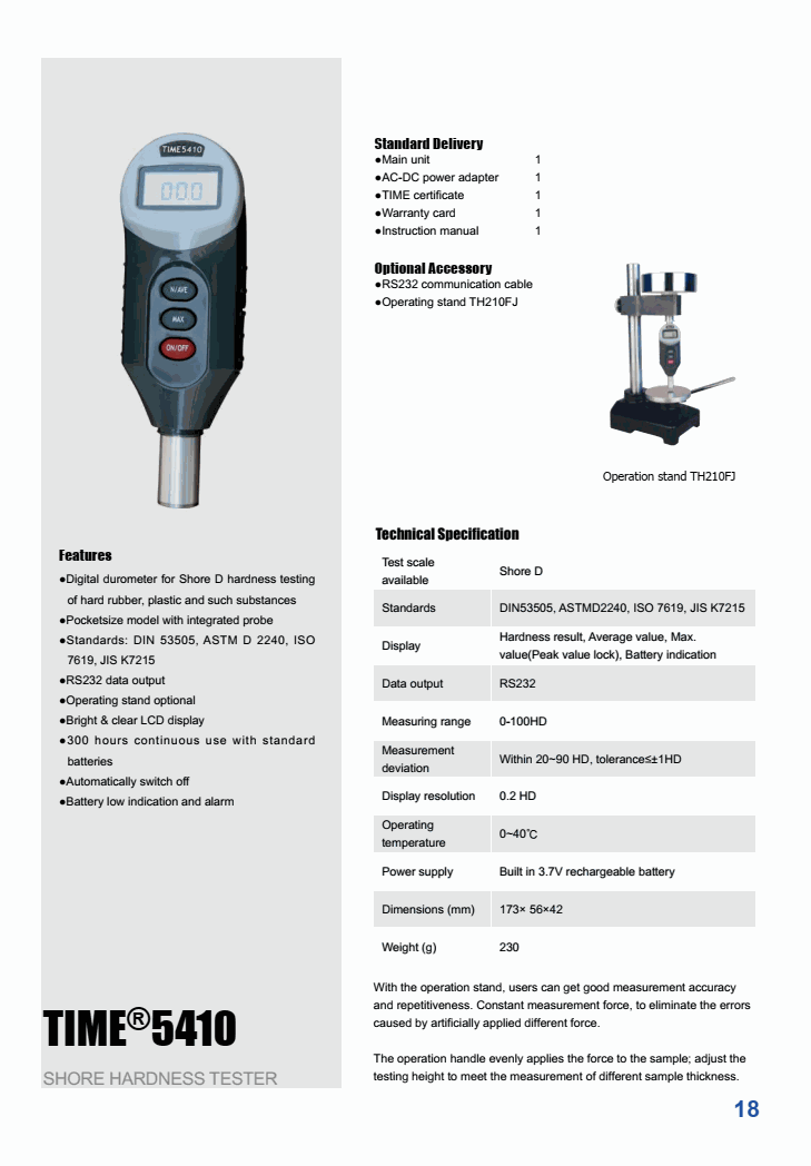 Standards: DIn53505, ASTMD2240, ISO 7619, jIS K7215