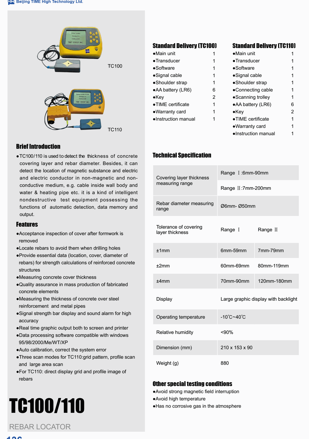 Rebar diameter measuring range: