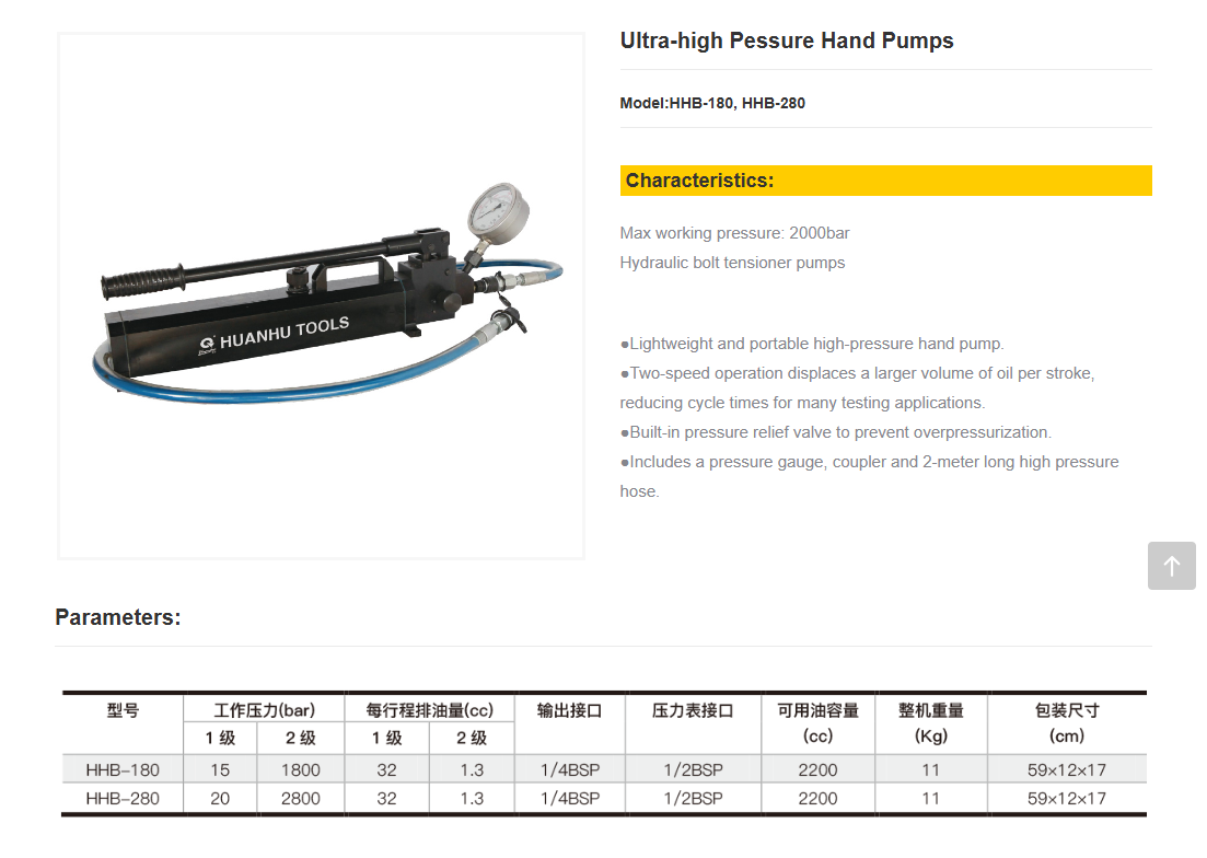 TLP HHB-180 Ultra-high Pessure Hand Pump (15~1800bar) | EMIN.ASIA