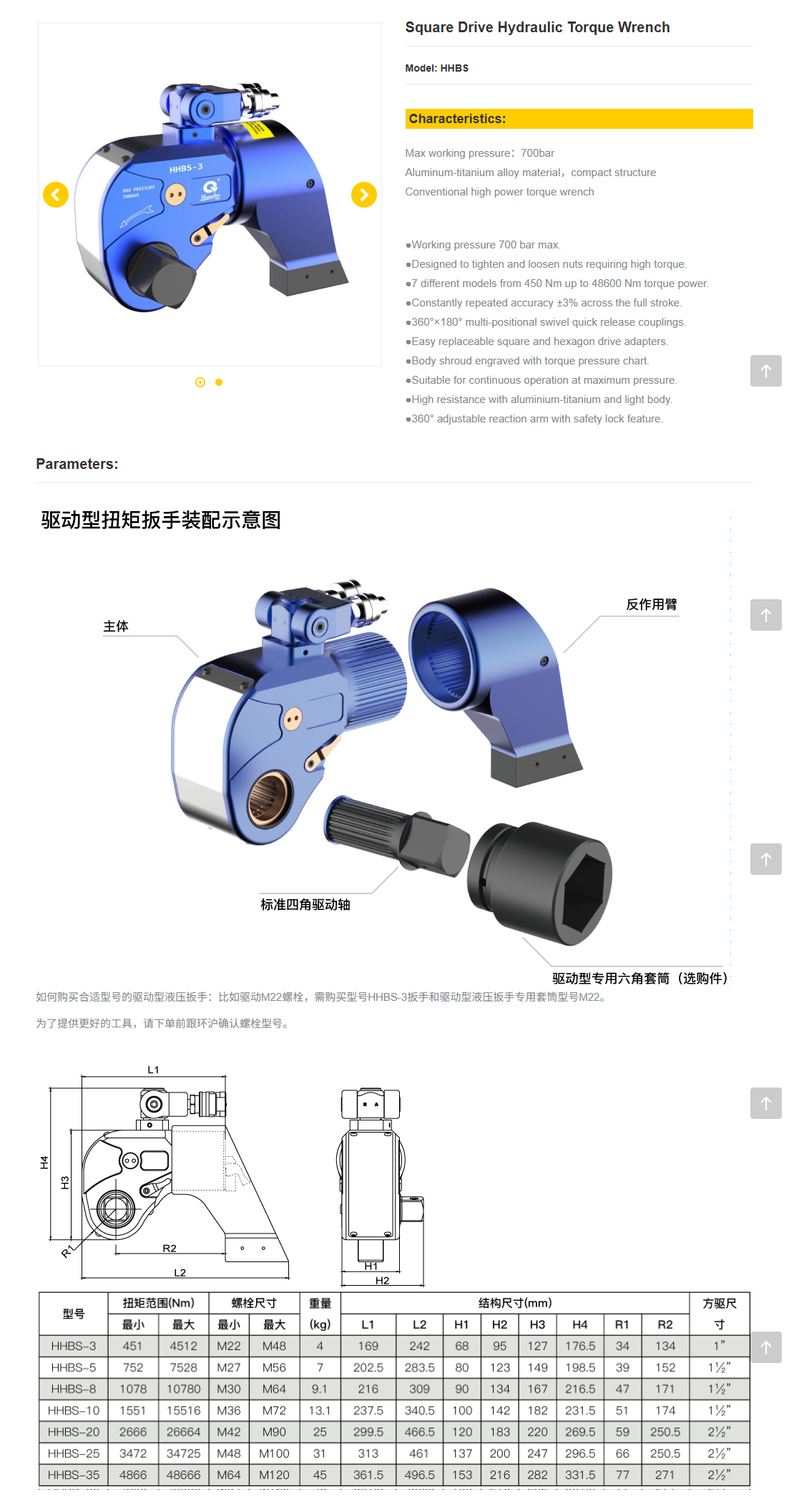 TLP HHBS-10 Square Drive Hydraulic Torque Wrench (1551~15516Nm) | EMIN.ASIA