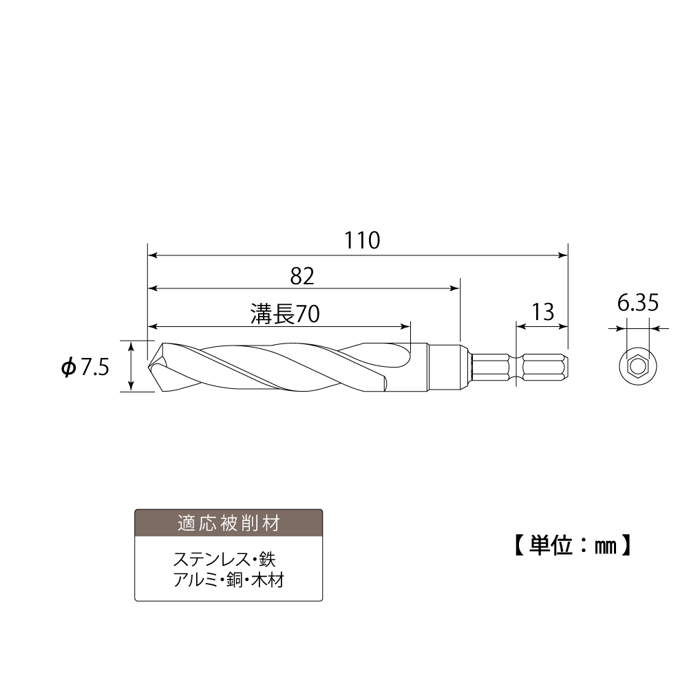 TOP Kogyo EOD-7.5G Cobalt Drill Bit(Titanium coating) (7.5mm) | EMIN.ASIA