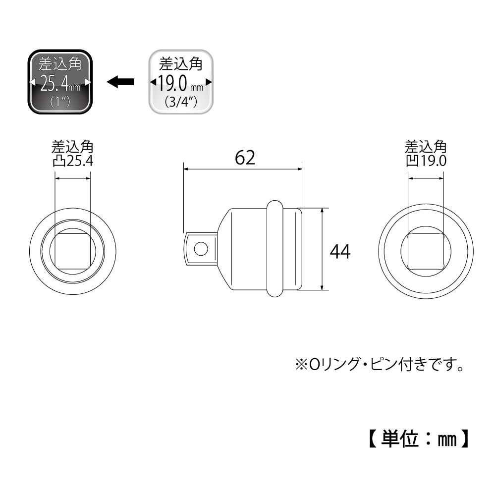 TOP Kogyo PAD-68 Impact Socket Adapter (62mm) | EMIN.ASIA