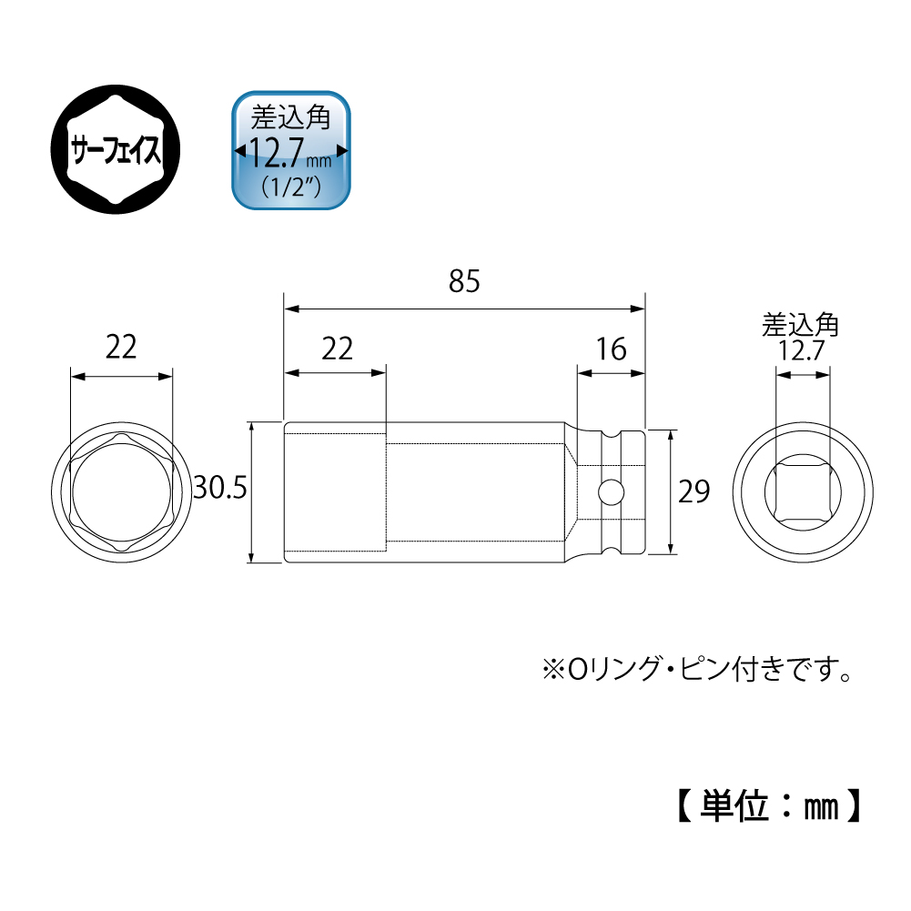 TOP Kogyo PT-422SL Super Long Impact Socket (1/2'', 22mm) | EMIN.ASIA