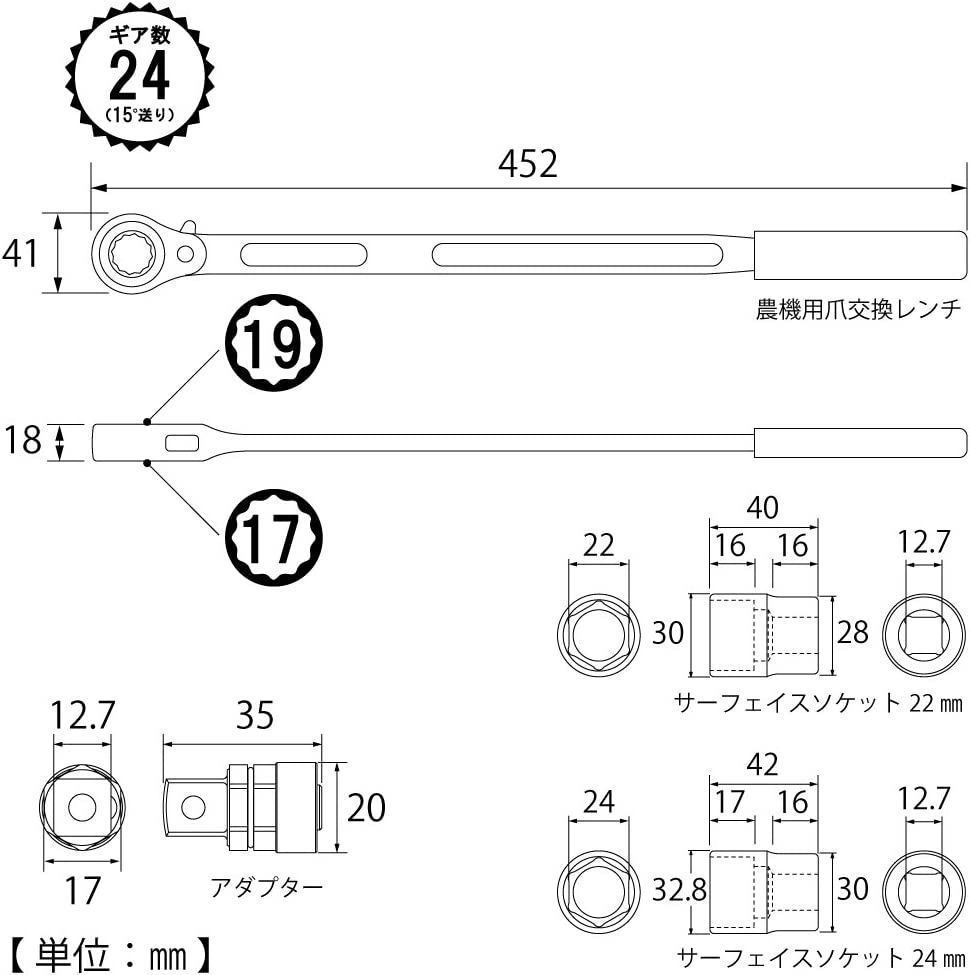 TOP Kogyo CKR-17X19S Replacement Wrench Set for Agriculture | EMIN.ASIA