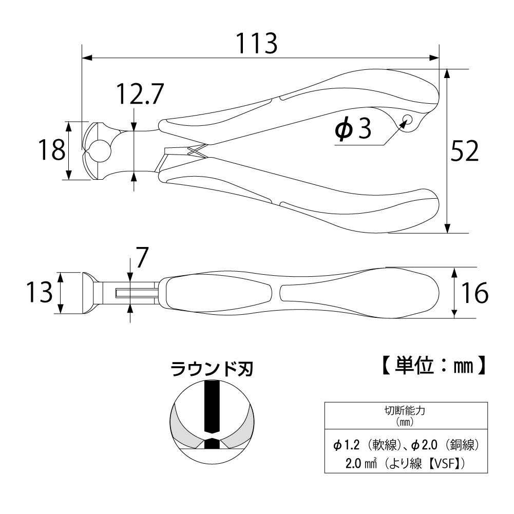TOP Kogyo EN3-120 3 Layered Diagonal Edge Cutting Pliers (113mm) | EMIN.ASIA