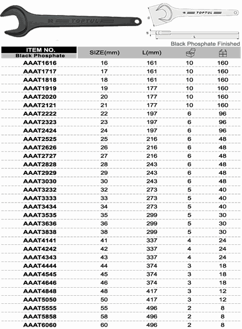 TOPTUL AAAT1616 Single Open End Wrench (16mm) | EMIN.ASIA