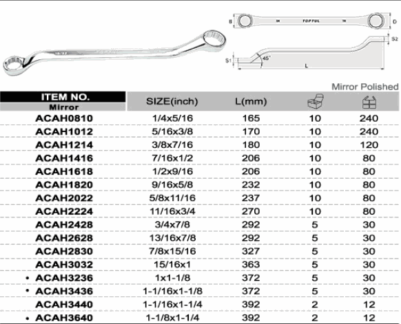 TOPTUL ACAH0810 Double Ring Wrench 45° Offset (1/4x5/16 inch) | EMIN.ASIA