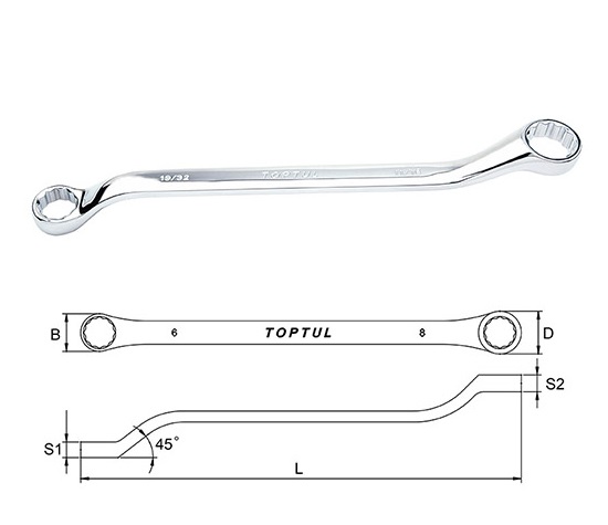 TOPTUL ACAH7278 Double Ring Wrench 45° Offset - SAE (Mirror Polished) (size 2-1/4x2-7/16") | EMIN.ASIA