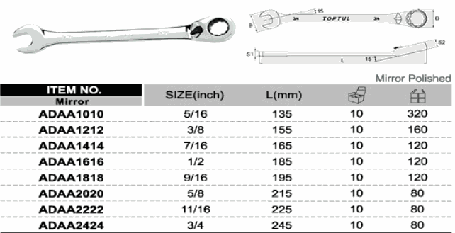TOPTUL ADAA1818 Reversible Ratchet Combination Wrench (9/16 inch) | EMIN.ASIA