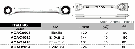 TOPTUL AOAC0608 Ratchet Double E-Star Ring Wrench (E6xE8 mm) | EMIN.ASIA